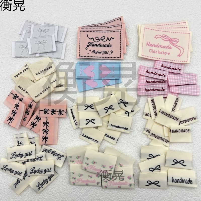 手作り大腸ロール布ラベル、折りたたみラベル、付属品、アクセサリー、織ラベル、襟ラベル、在庫あり
