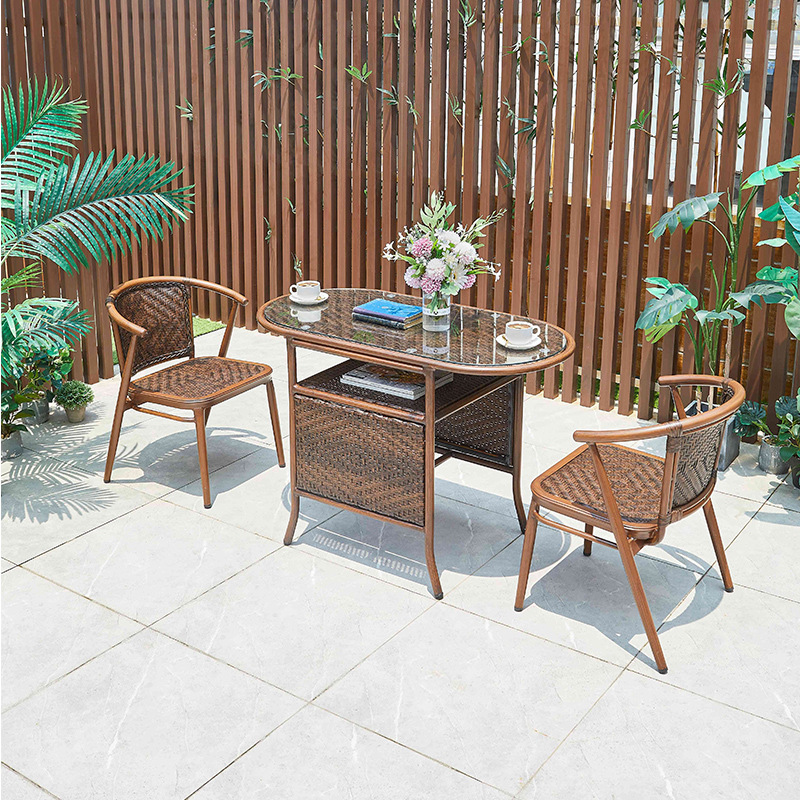 屋外テーブルと椅子庭園花園露天アルミ藤椅子三点セット民宿ホテルカフェ藤編み椅子