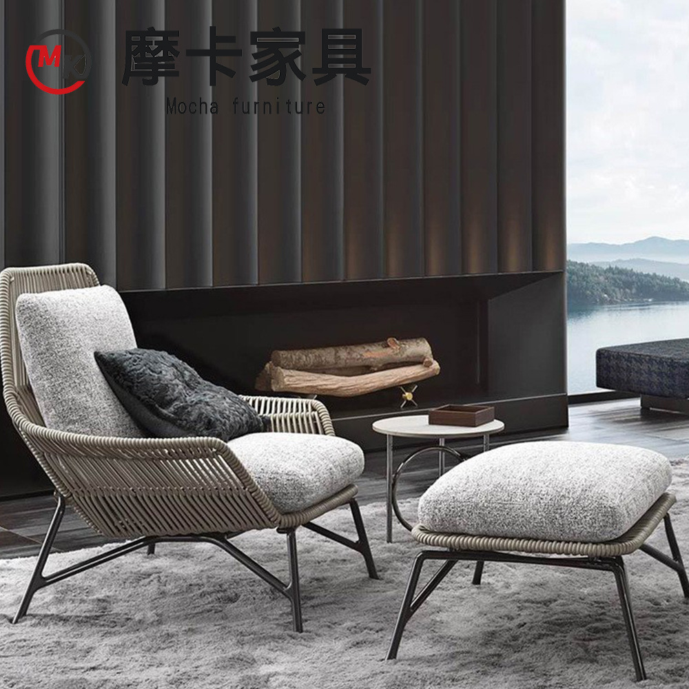 北欧屋外藤椅子庭園屋外テーブルと椅子の組み合わせレジャー椅子民宿ホテル見本室藤椅子