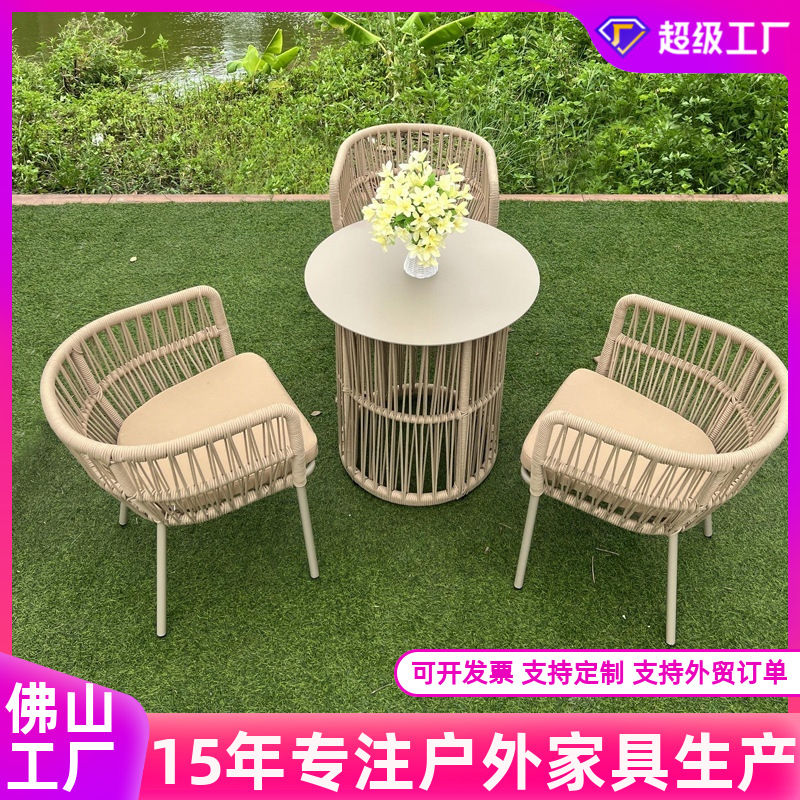 北欧屋外編み椅子ソファーリビングルーム庭レジャーチェア屋外露天名宿ベランダロープチェアセット