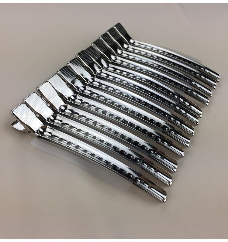 ステンレス鋼のヘアクリップカモノハシクリップ理髪クリップ金属大型ハンドプッシュ波形単穴鉄クリップ位置決めヘアクリップ