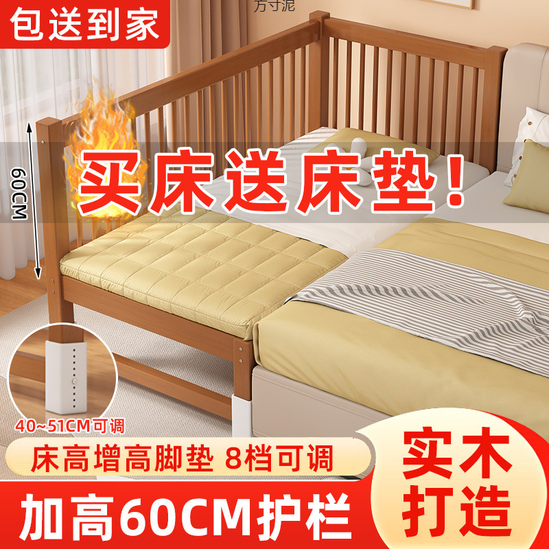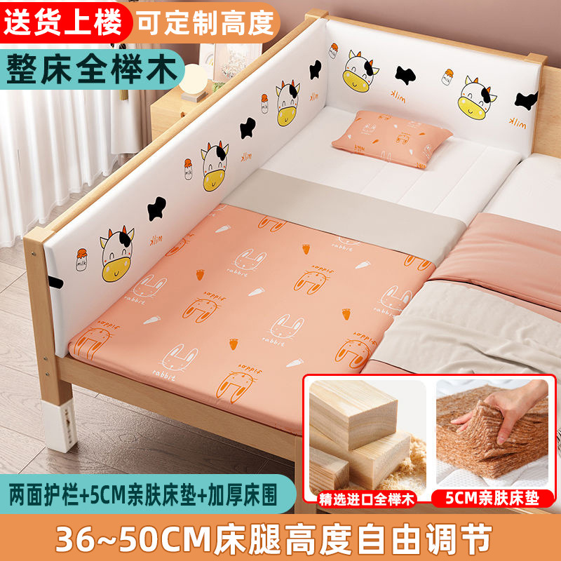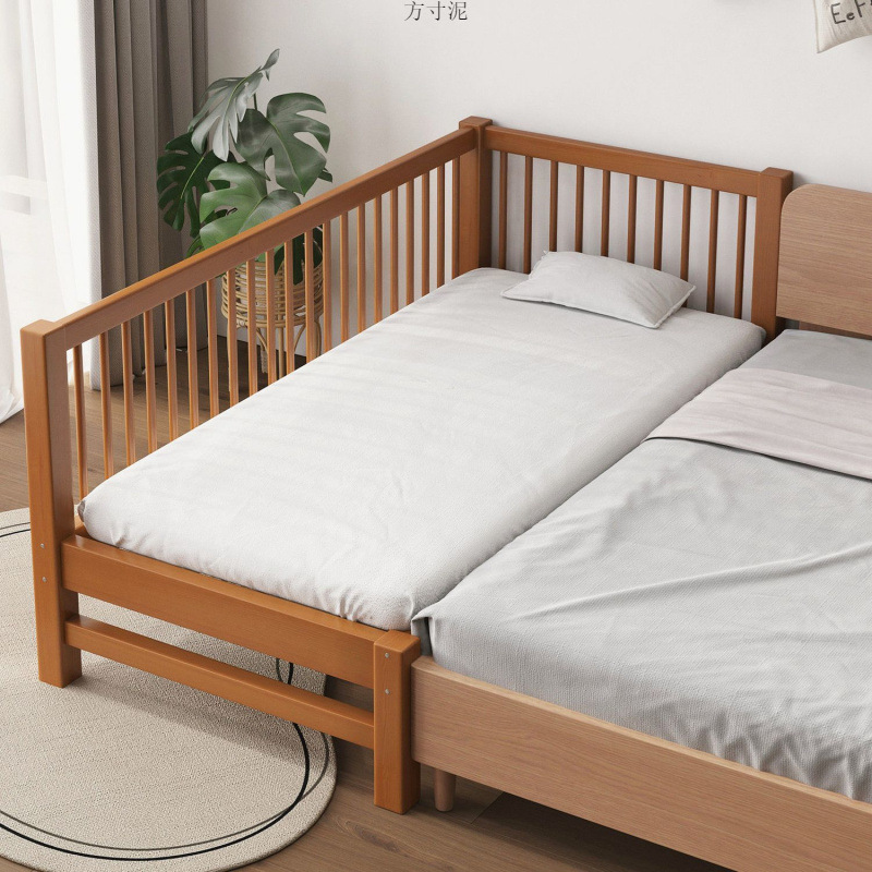 無垢材スプライスベッド子供用ベッドシングルワイドベッドサイドベッドガードレール付きベビーベッドスプライス大型ベッド外国貿易卸売