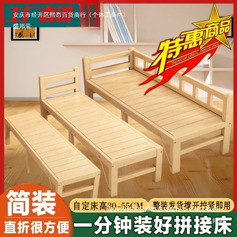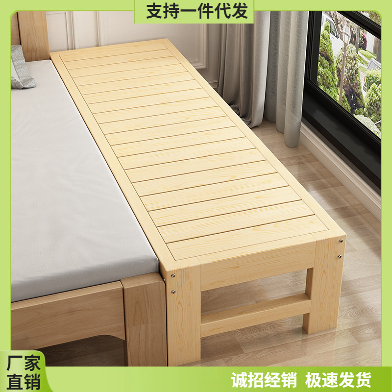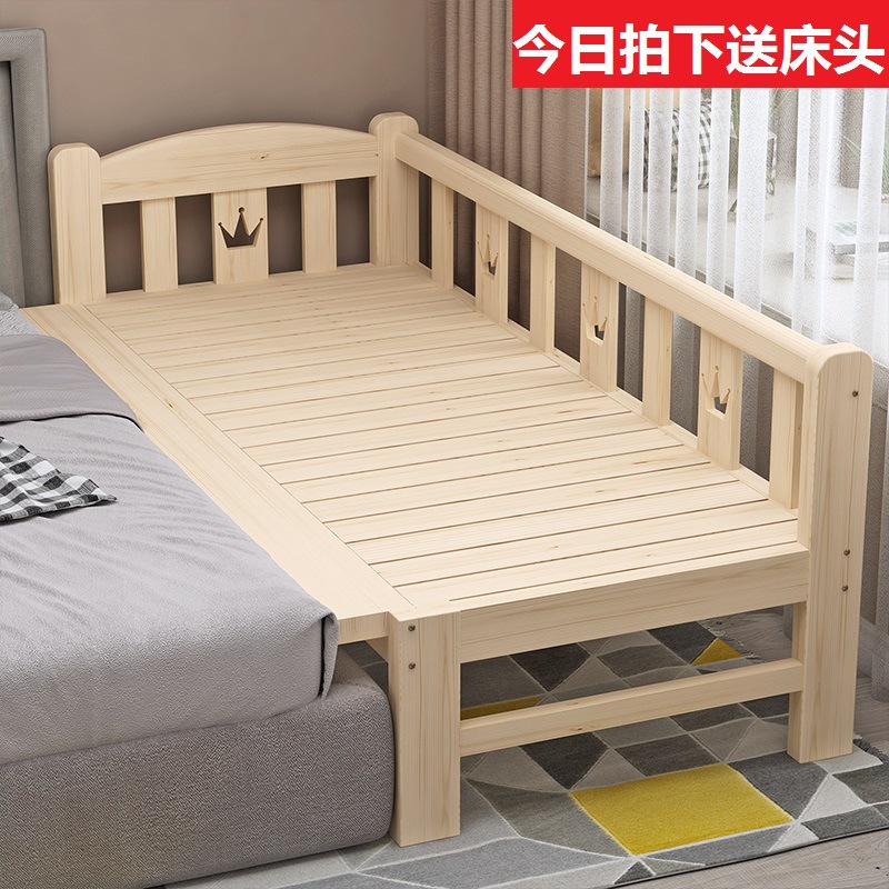 大人用無垢材ベッド、幅広スプライシングベッド、子供用シングルベッド、男の子と女の子のベッドサイドのシンプルなベビーベッド