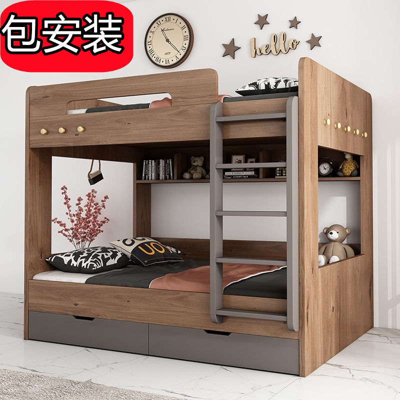 卸売モダンなミニマリストハイローベッド二段ベッド原木ダブルベッド同じ幅北欧 1.02m1.5