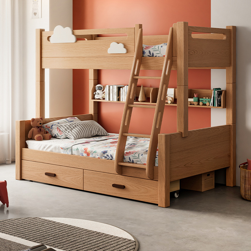 ソース全無垢材二段ベッド、小型二段ベッド、多機能ブナ材子供用平行高二段ベッド