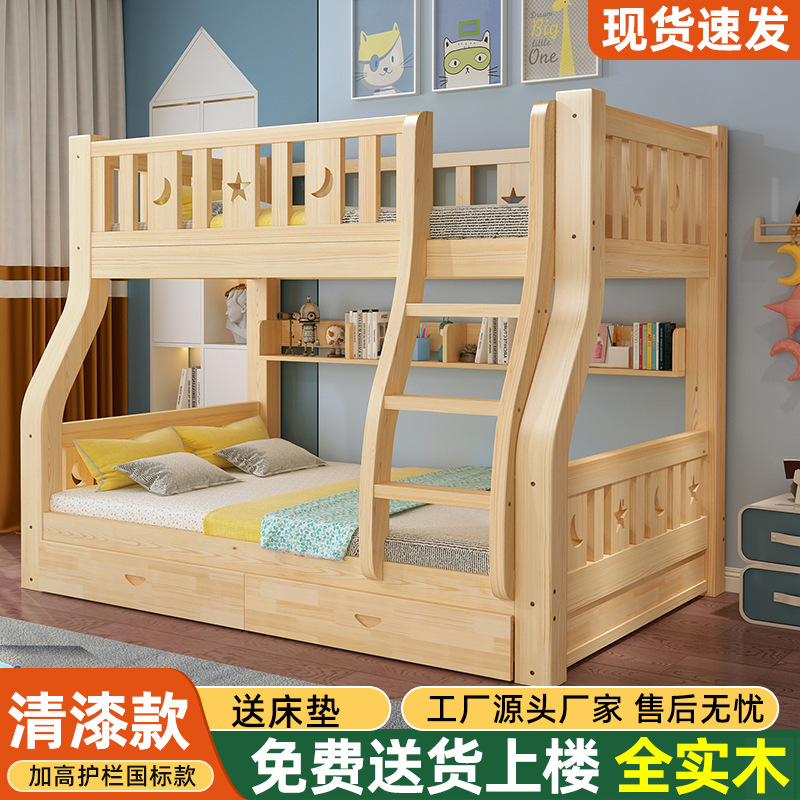 卸売全無垢材国家標準ハイローベッド二段ベッド二段ベッド二段木製ベッド子供と大人の二段ベッド