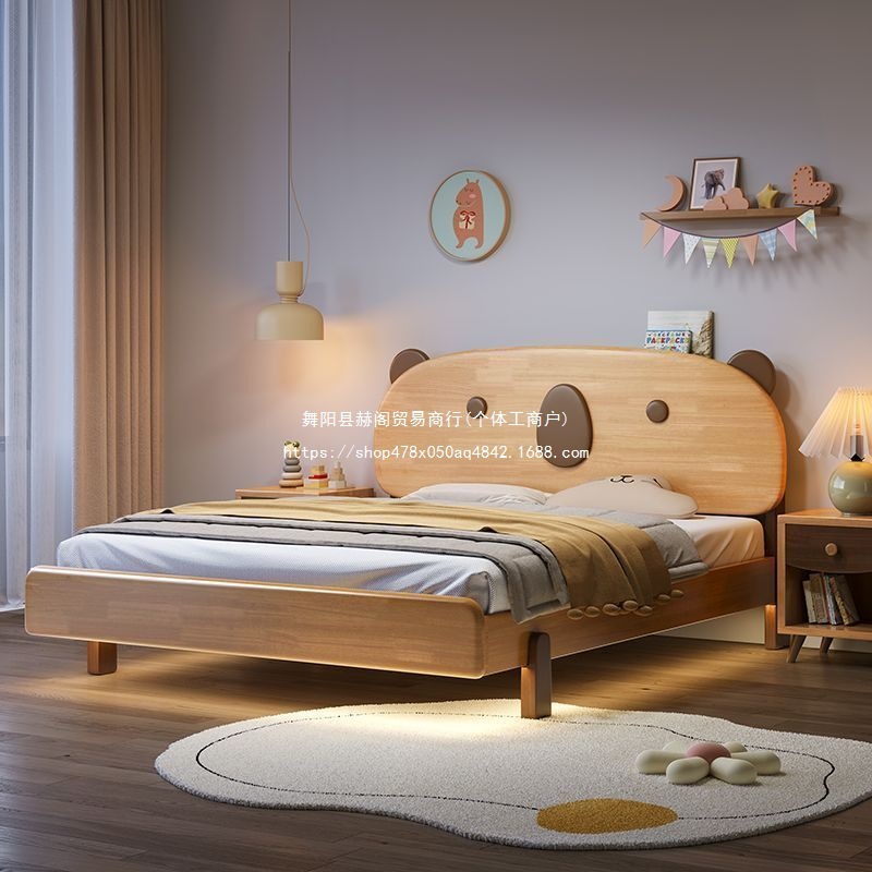 無垢材子供用ベッド 1.5m 北欧ホームオールインワンベッド 1.2 子供のかわいい漫画ベッド 1m ラバーウッドシングルベッド