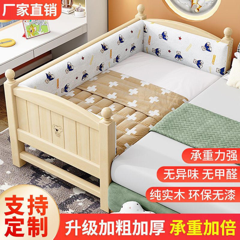 無垢材の子供用ベッドベビーベッド幅広ベッドサイドシングルボーイベビーベッドガードレール付きスプライシングベッドドロップシッピング