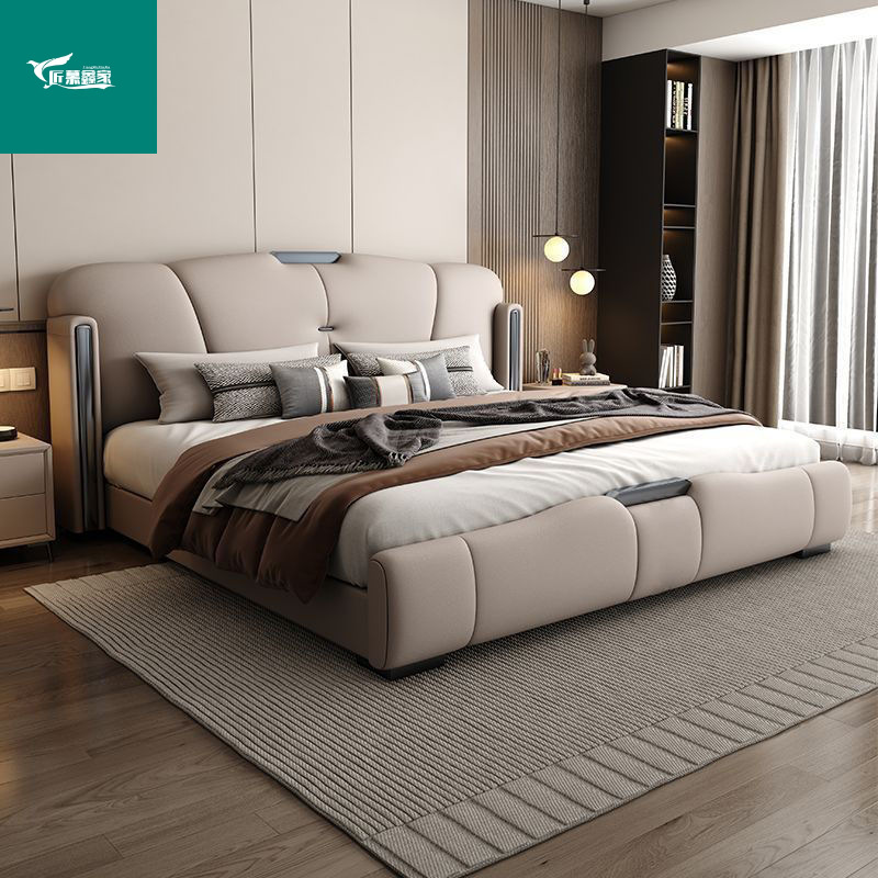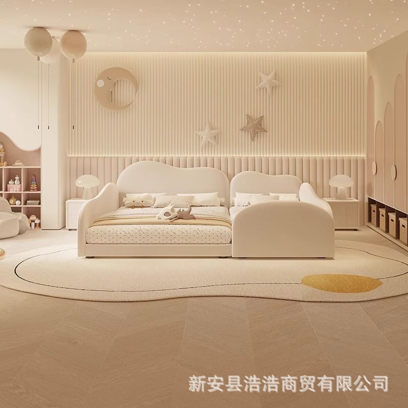 新しいスタイルの4人家族、特大ベッド、マスターベッドルーム、親子ベッド、2人用畳、ダブルテクノロジーレザーベッド