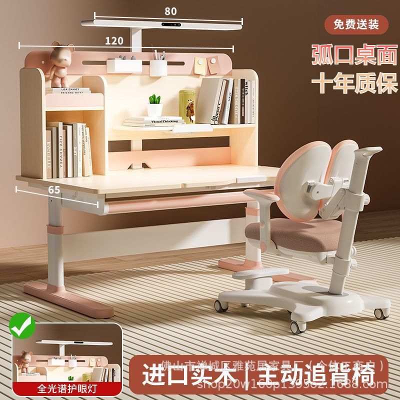 子供用学習テーブル無垢材昇降可能なアークデスク学生ホームデスクバックライティングデスクと椅子セット