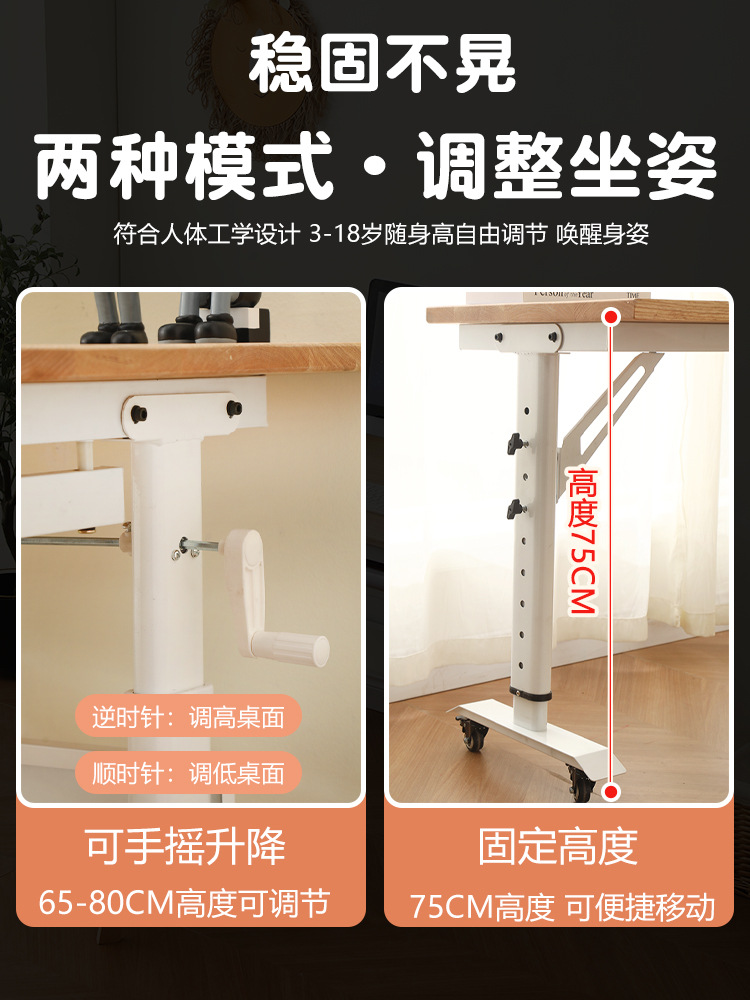 W * 移動可能な机寝室家庭用オーク材児童学習コンピュータテーブル実木デスクトップ手動昇降テーブルケヤキ