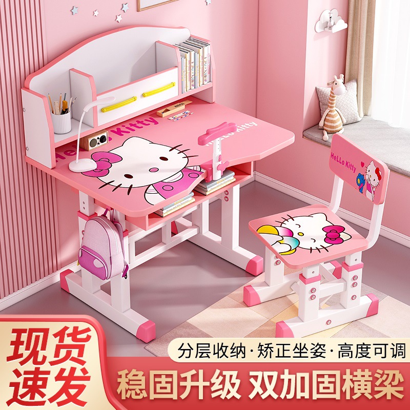 中華風愛童象脚学生用机椅子セット 子供学習机 国学対応昇降式机椅子セット