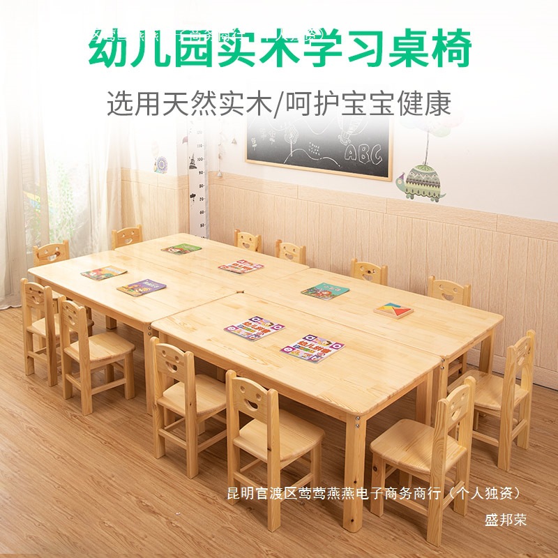 幼稚園無垢材テーブルと椅子子供用パイン材ライティングテーブルセット赤ちゃん早期教育おもちゃゲーム学習テーブル