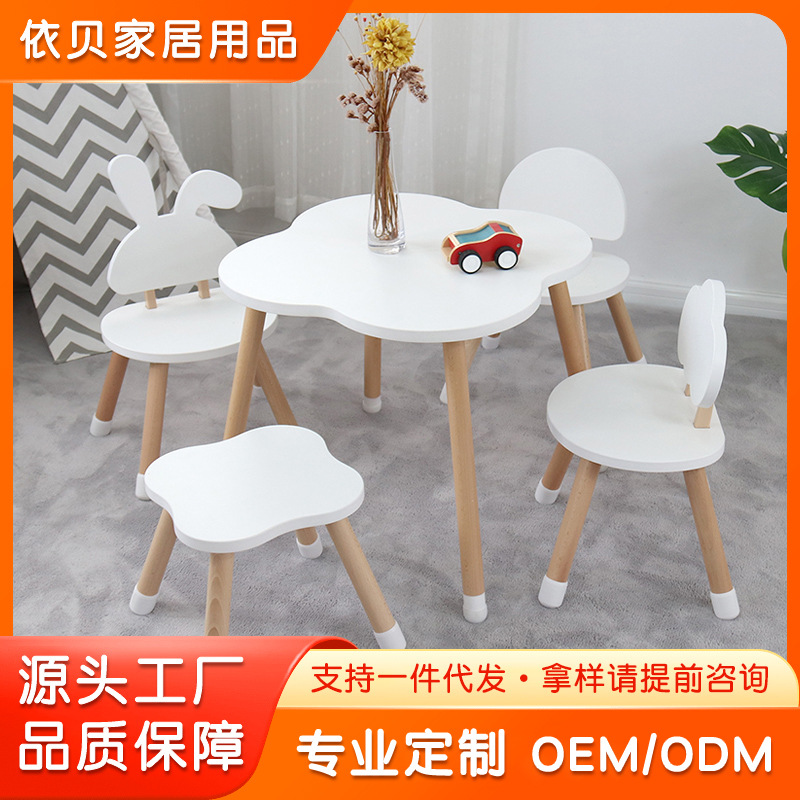 Ins北欧家庭は本を読んで食事をします。幼稚園の朝は木のテーブルと椅子の子供の漫画の田園系のテーブルと椅子のセットを教えます。
