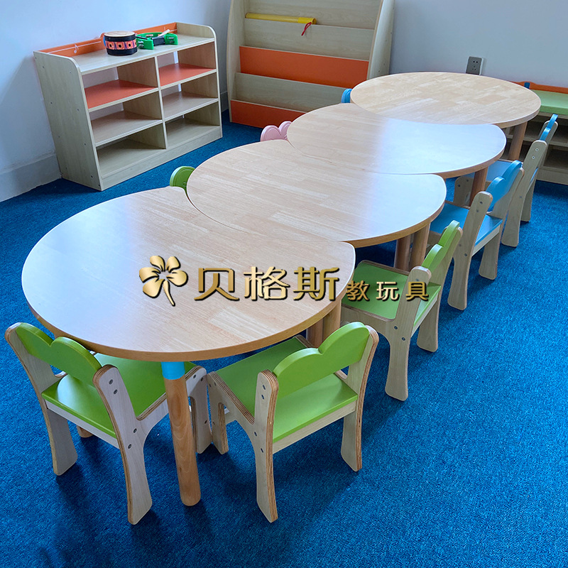 幼稚園コンビネーションテーブル、子供用トレーニング台形テーブル、三日月テーブルおもちゃ、昇降式石鹸テーブル