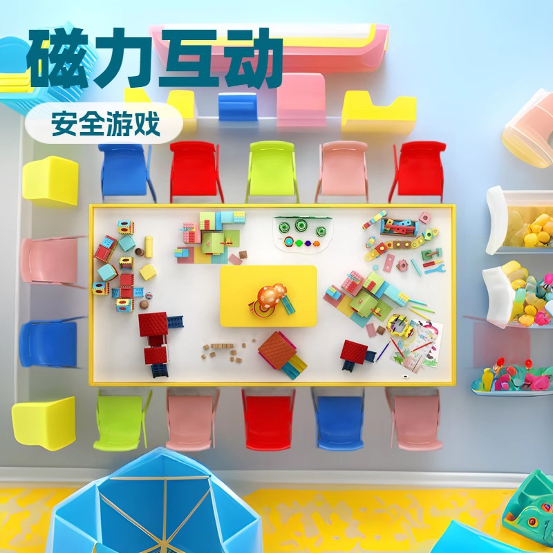 営業所のエンターテイメントエリア子供用テーブルと椅子の組み合わせ空中階層ゲームテーブル読書エリア早期教育積み木テーブル