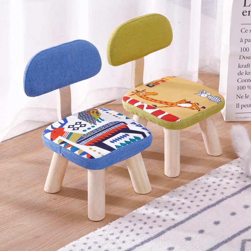 子供用スツール無垢材ホーム漫画かわいい背もたれ椅子生地低スツールクリエイティブ小さなスツールベビー靴交換スツール