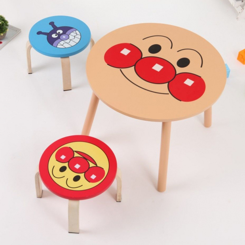 日本輸入アンパンマン細菌子供子供漫画木製滑り止めダイニングチェア小さな丸いスツール