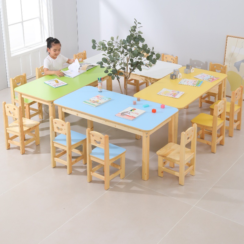 メーカーは幼稚園の早教機関専用カラー実木の机と椅子の子供の学習テーブルとゲームテーブルの卸売りを提供しています。