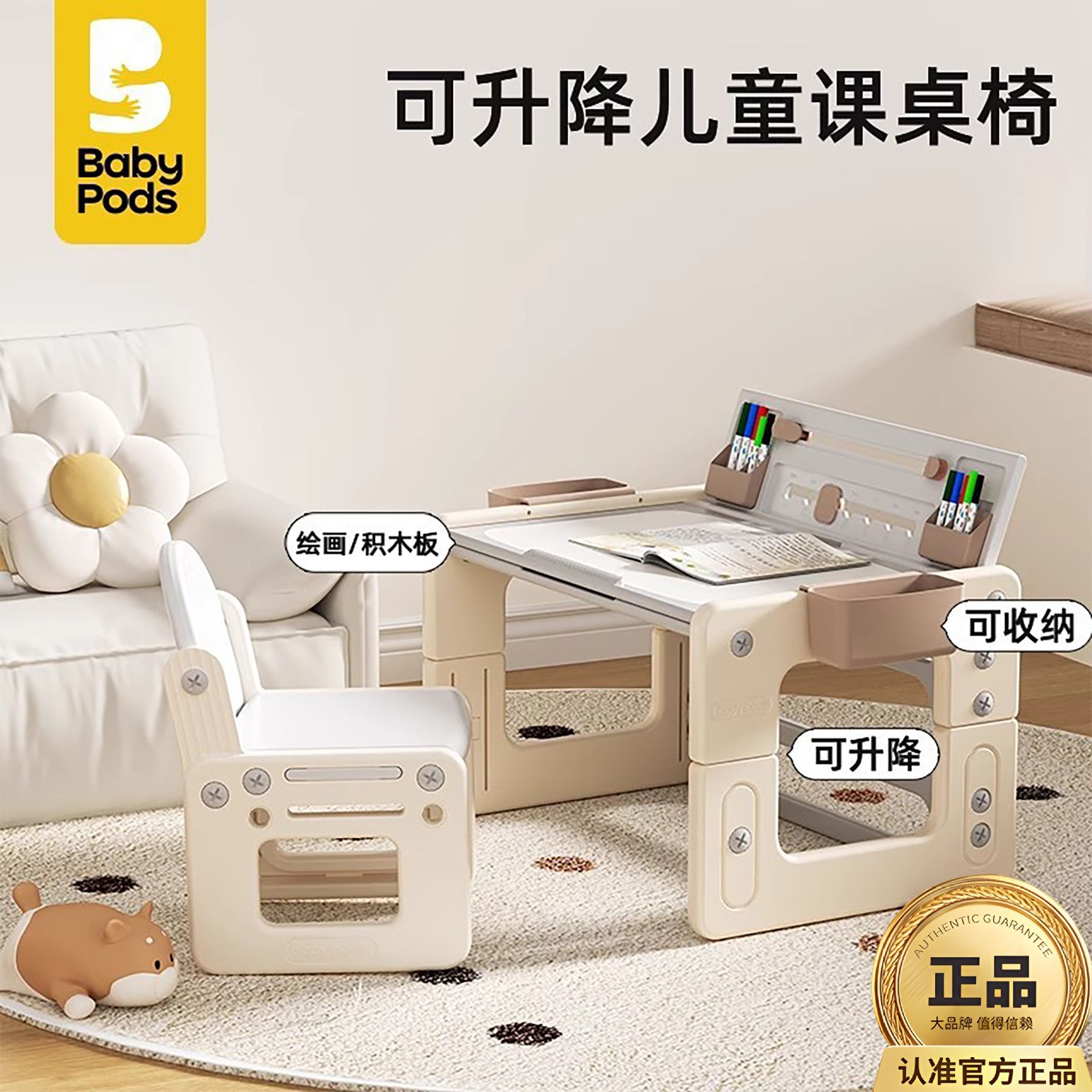 Baby pods子供用学習テーブル机椅子付き昇降可能学生用机一体テーブル赤ちゃん用積み木テーブル
