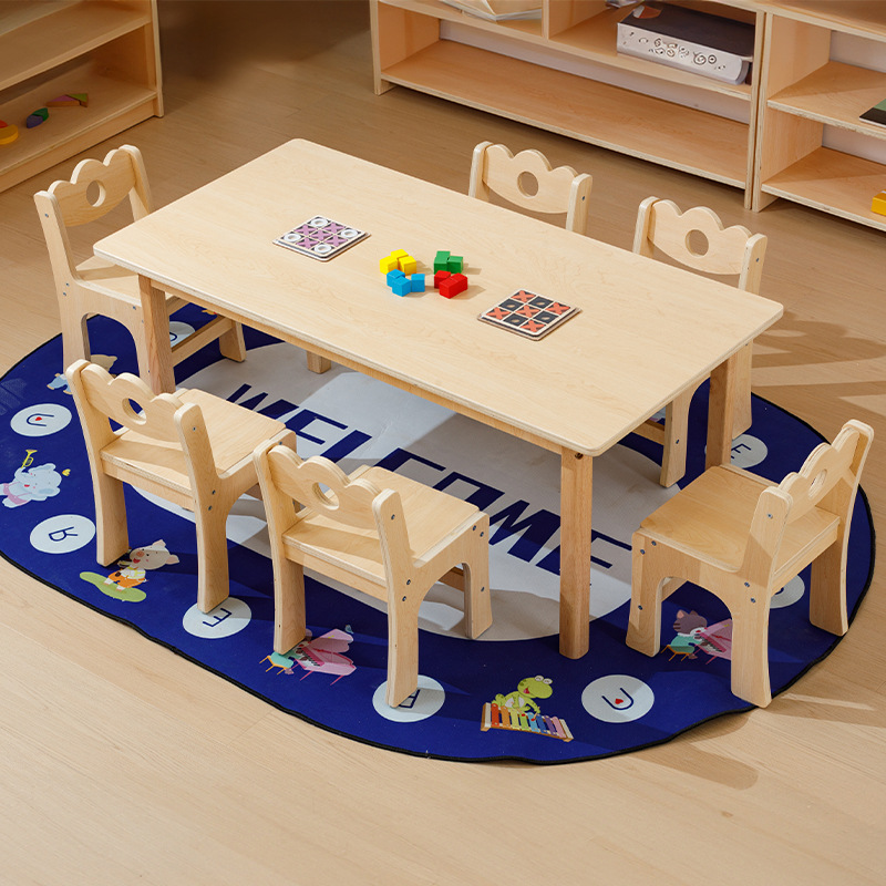 工場卸売 幼稚園用正方形・長方形テーブル 卸売 小さな椅子 無垢材 子供教室 書き物 学習 木製