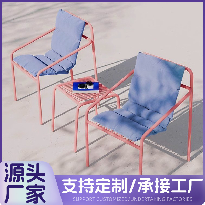 シンプルなレジャー庭園屋外テーブルと椅子のミルクティー店カフェ鉄芸カラー露天セットの組み合わせデザイン椅子
