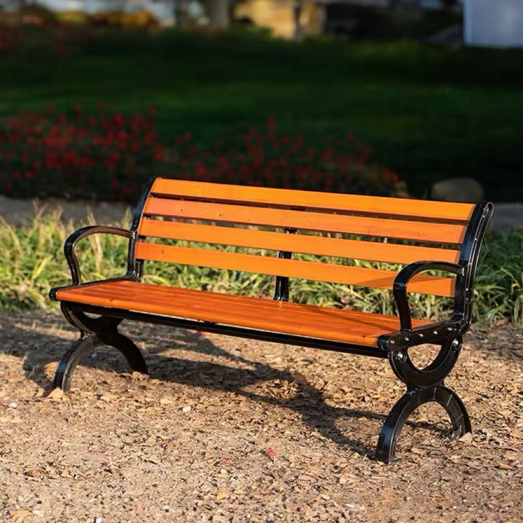 パークチェア屋外ベンチ中庭ダブルバックレストベンチ屋外防錆木材プラスチック木製レジャーシートアイアンアート