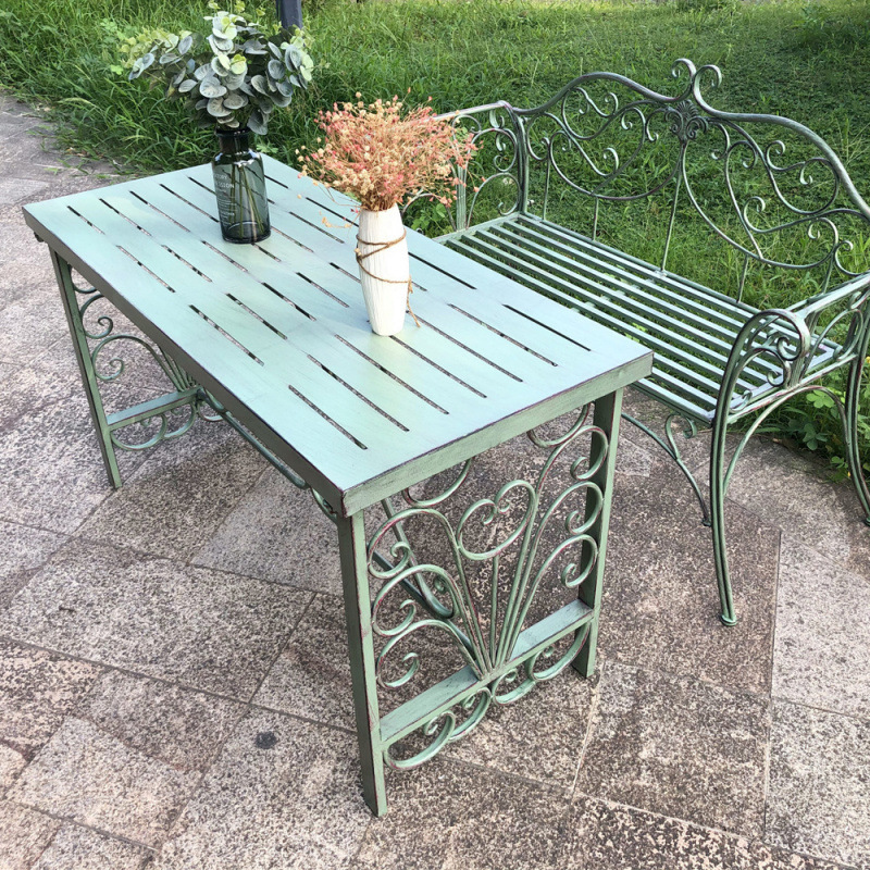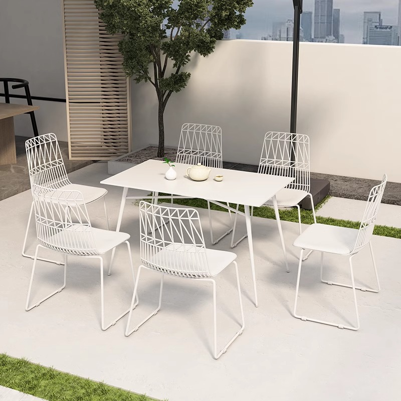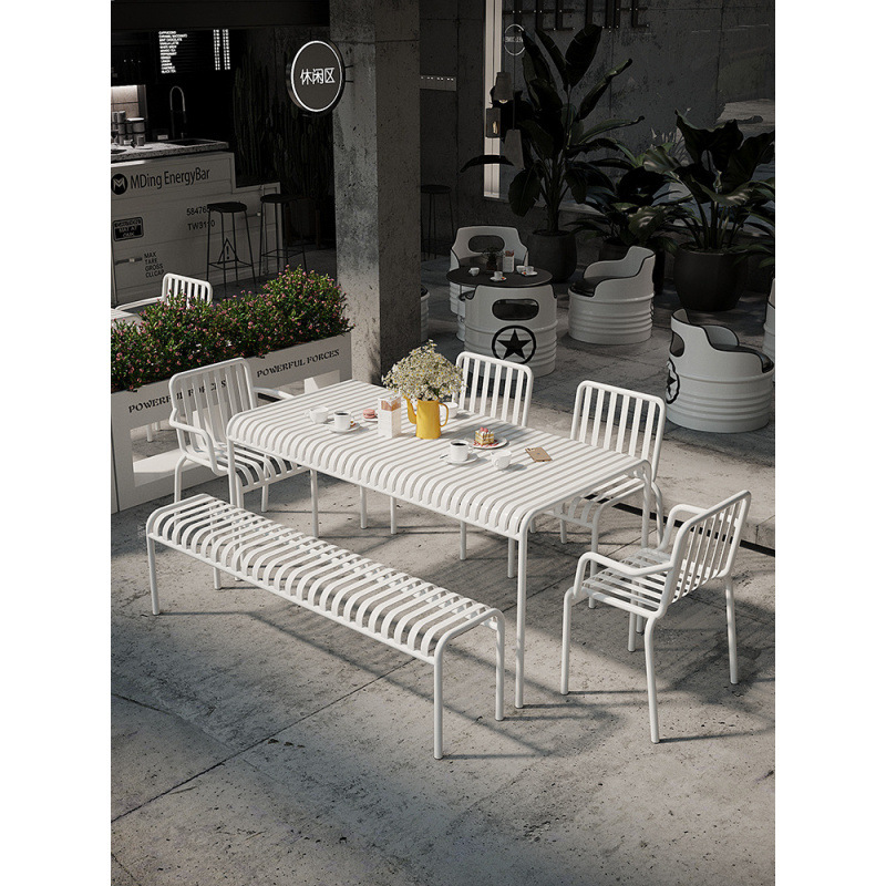 モダンな屋外中庭テーブルと椅子の組み合わせバルコニーガーデンミルクティーショップカフェ屋外テーブルレジャー鉄製ロングテーブル