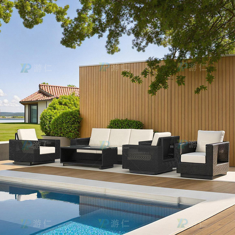モダンでシンプルな屋外防水性と日焼け止め籐ソファ組み合わせ中庭レジャーと風景鑑賞ヴィラ屋外バルコニーソファ