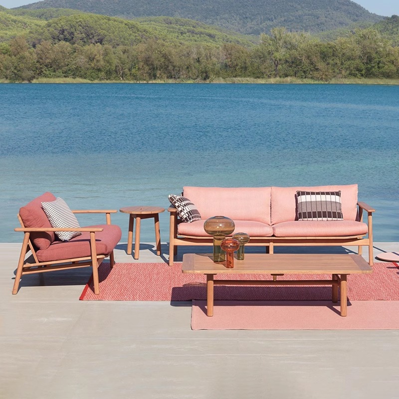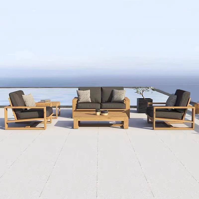 北欧屋外チークソファ中庭ヴィラ防腐日焼け止め屋外テラス B&B レジャー無垢材家具の組み合わせ