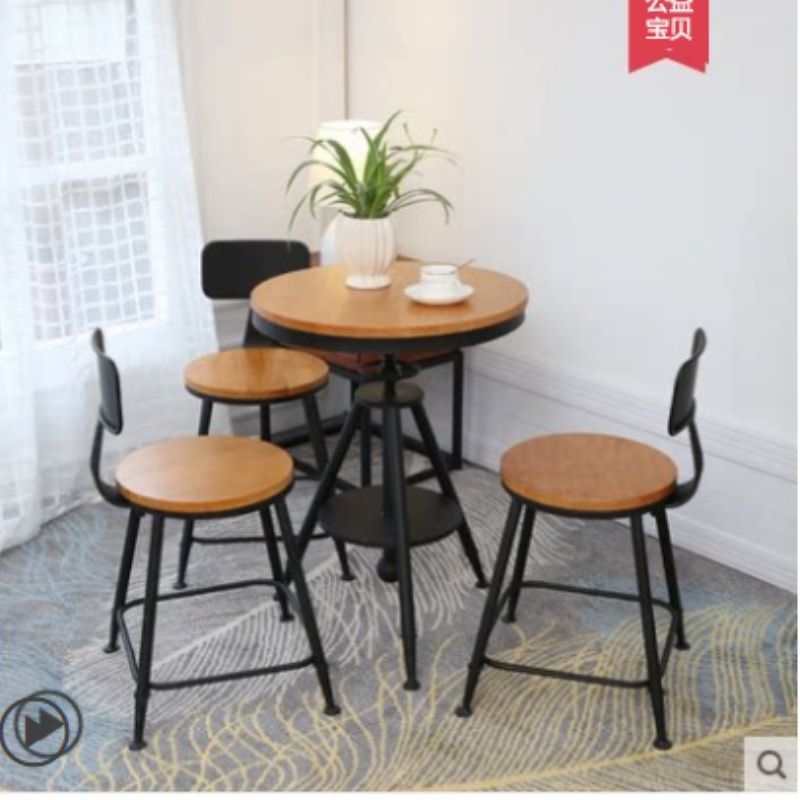 北欧カフェテーブルと椅子の組み合わせアイアンバルコニーミルクティーショップレジャーテーブルと椅子の3点セット無垢材の小さなラウンドテーブルコーヒーテーブル