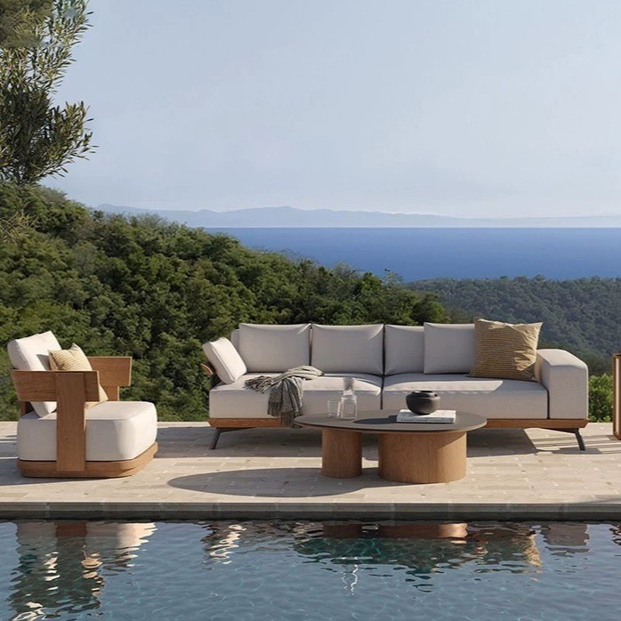 屋外チークソファ中庭防水日焼け止めヴィラホテル屋外屋外家具屋外ソファレジャー