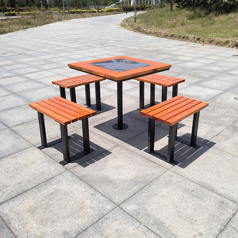 屋外チェス盤テーブルと椅子防腐木材屋外公園コミュニティレジャースクエア高齢者活動テーブル 1 つと椅子 4 脚