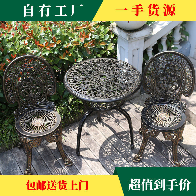 鋳造アルミニウム中庭バルコニー 3 ピーステーブルと椅子の組み合わせ家具日焼け防止と雨よけガーデンルーム屋外鉄アルミニウム合金