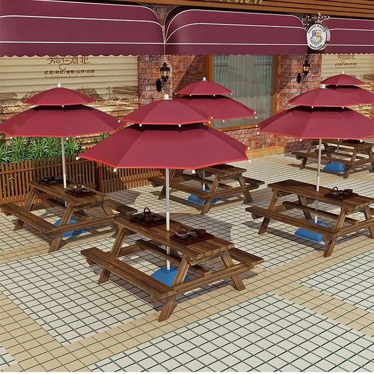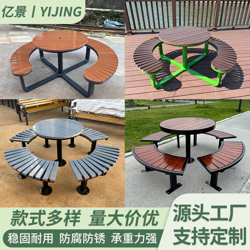 屋外防錆炭化テーブルと椅子レジャーテーブルと椅子の組み合わせバルコニー屋外テーブルと椅子傘付き公園無垢材一体型ダイニングテーブル