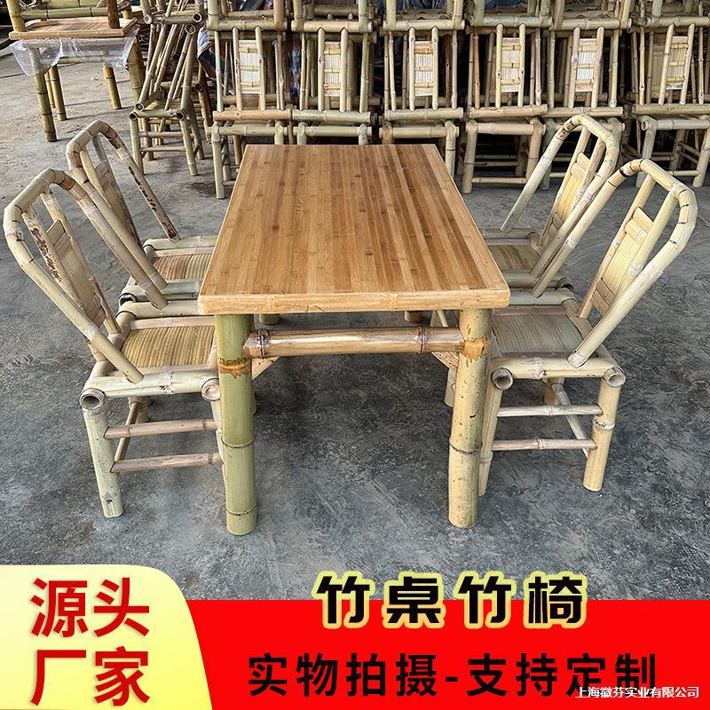 レトロな竹のダイニングテーブルと椅子の組み合わせ、商業用昔ながらのホテルレストラン、炉茶屋の竹テーブル、屋外レジャーテーブルと椅子
