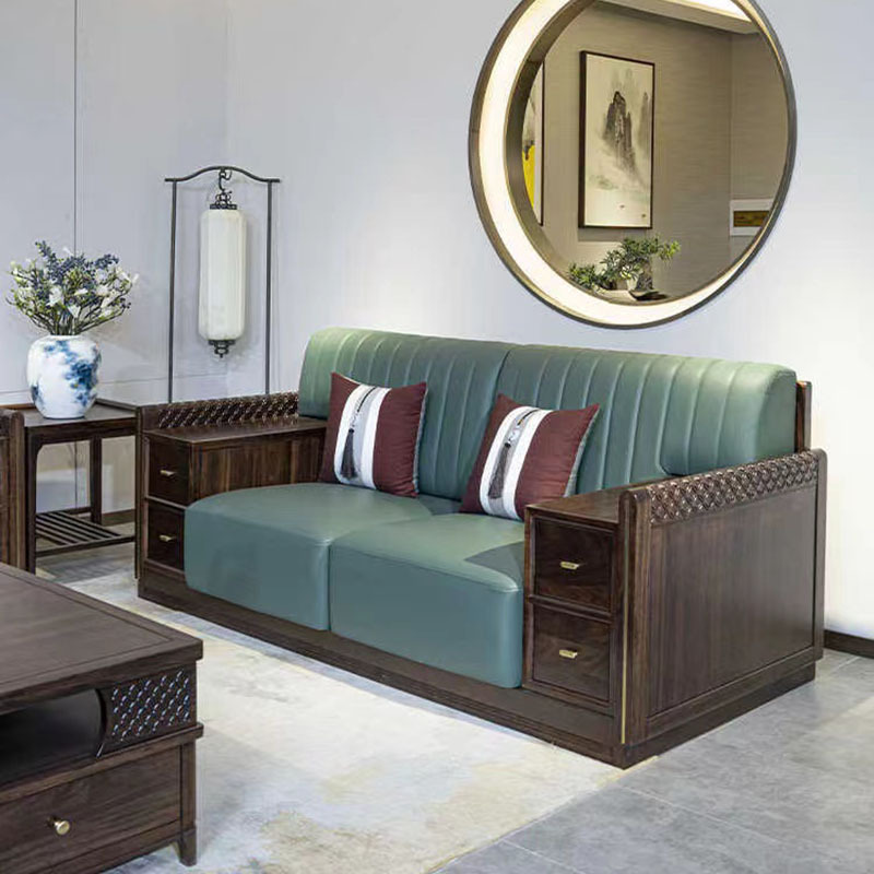 新しい中国風のソファ組み合わせブラックウッド無垢材シンプルモダンなヴィラリビングルーム大小レザーアート組み合わせ家具