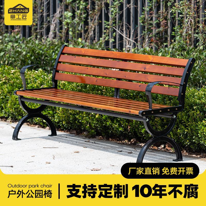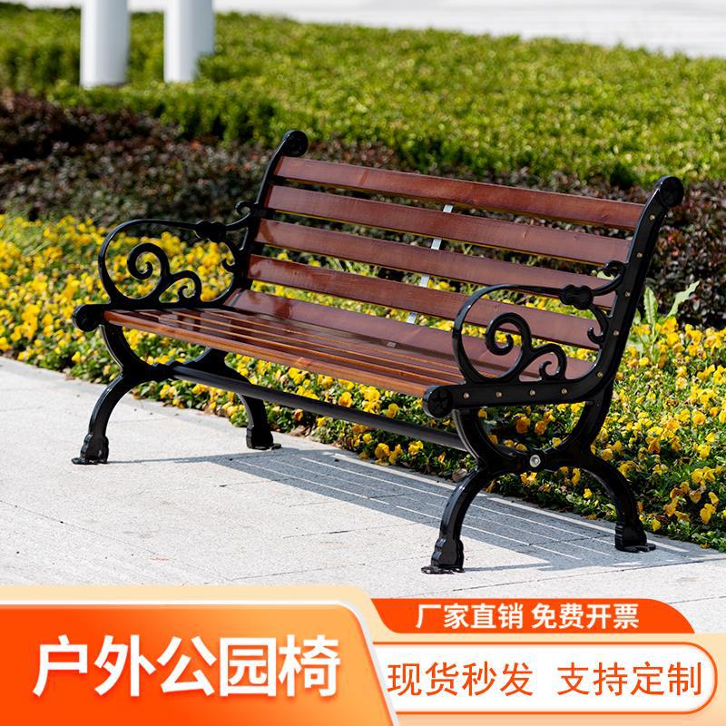 パークチェア屋外ベンチ中庭背もたれレジャーシート防錆木材無垢材プラスチック木製ロングシートスツール鋳鉄アート
