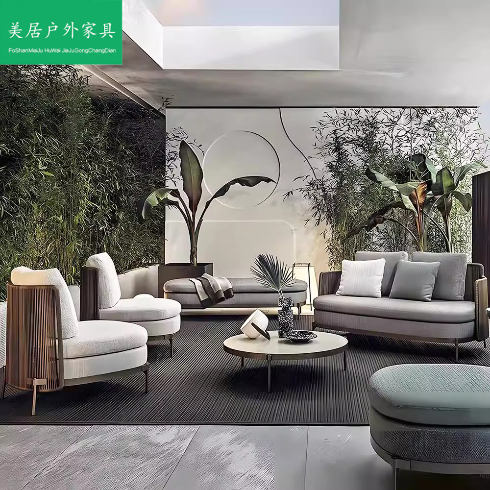 屋外ソファガーデンヴィラ屋内外モデルルーム籐椅子中庭レジャーテーブルと椅子の組み合わせセット工場カスタマイズ