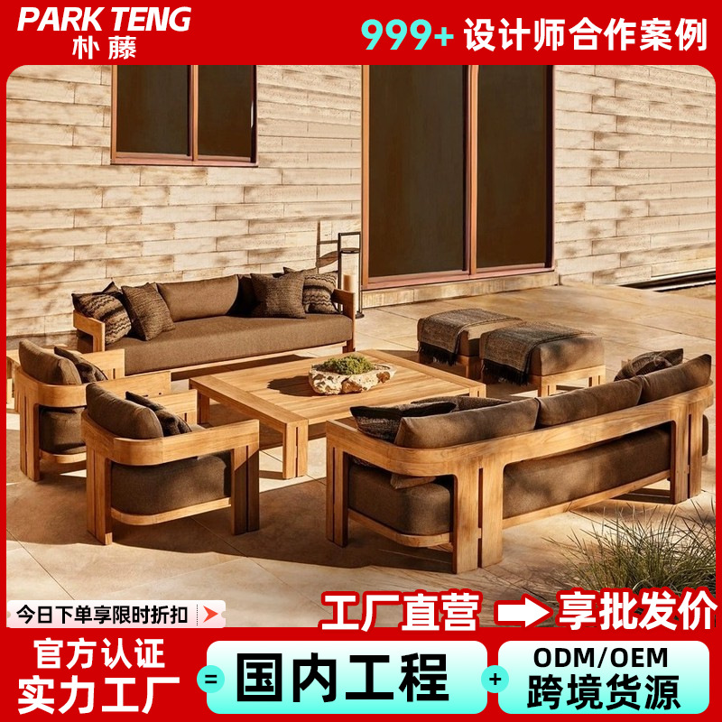 北欧屋外無垢材ソファヴィラ中庭ガーデン籐織ソファ組み合わせハイエンドバルコニーチークソファ家具