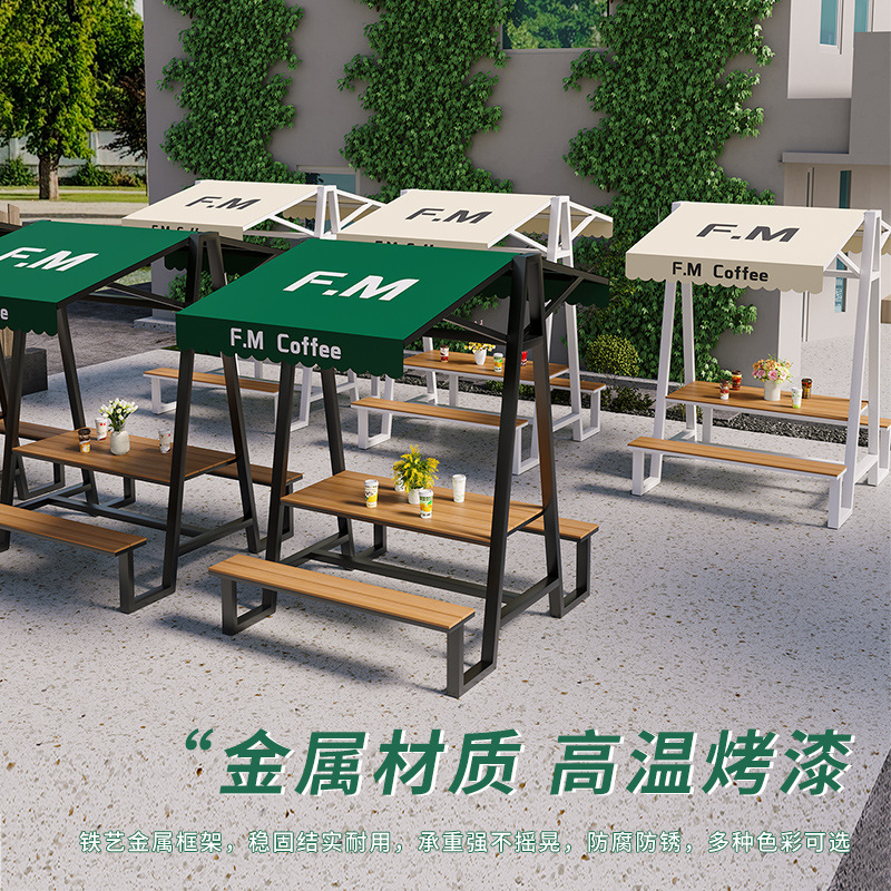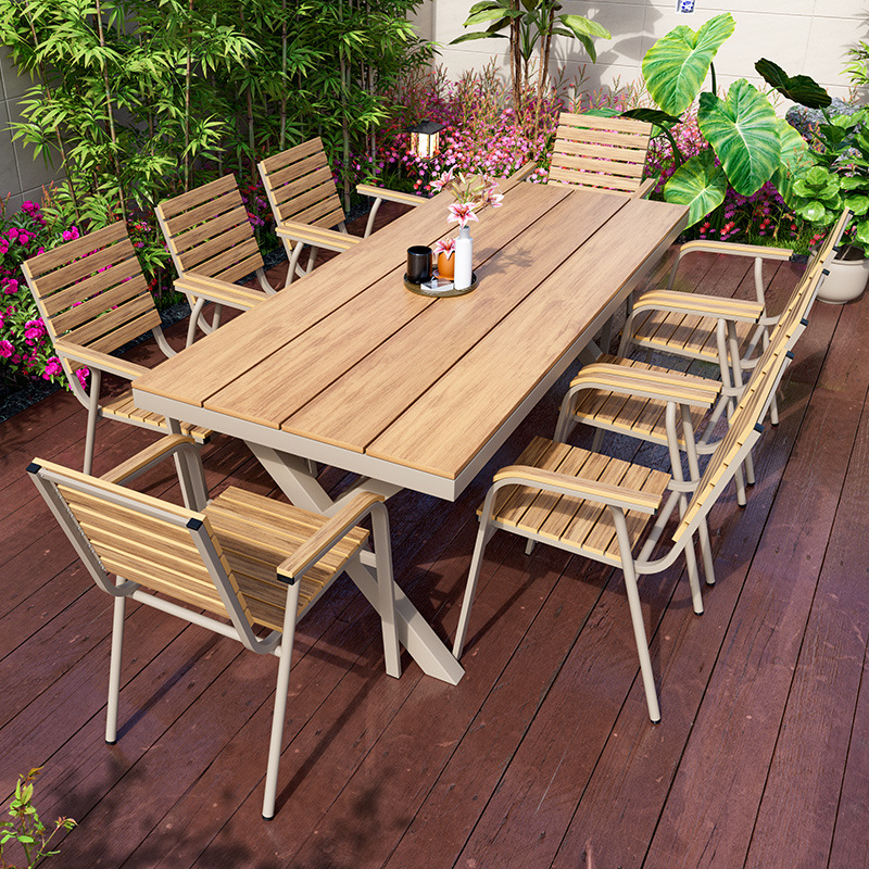 屋外広場一体型テーブルと椅子の組み合わせ屋外中庭ガーデンプラスチック木製ダイニングテーブルミルクティーショップ屋外レジャーダイニングテーブルと椅子