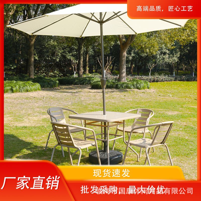 屋外日除け傘アルミ合金中柱傘庭傘ミルクティー店屋外業務用テーブルと椅子に傘を持って日傘を並べます。