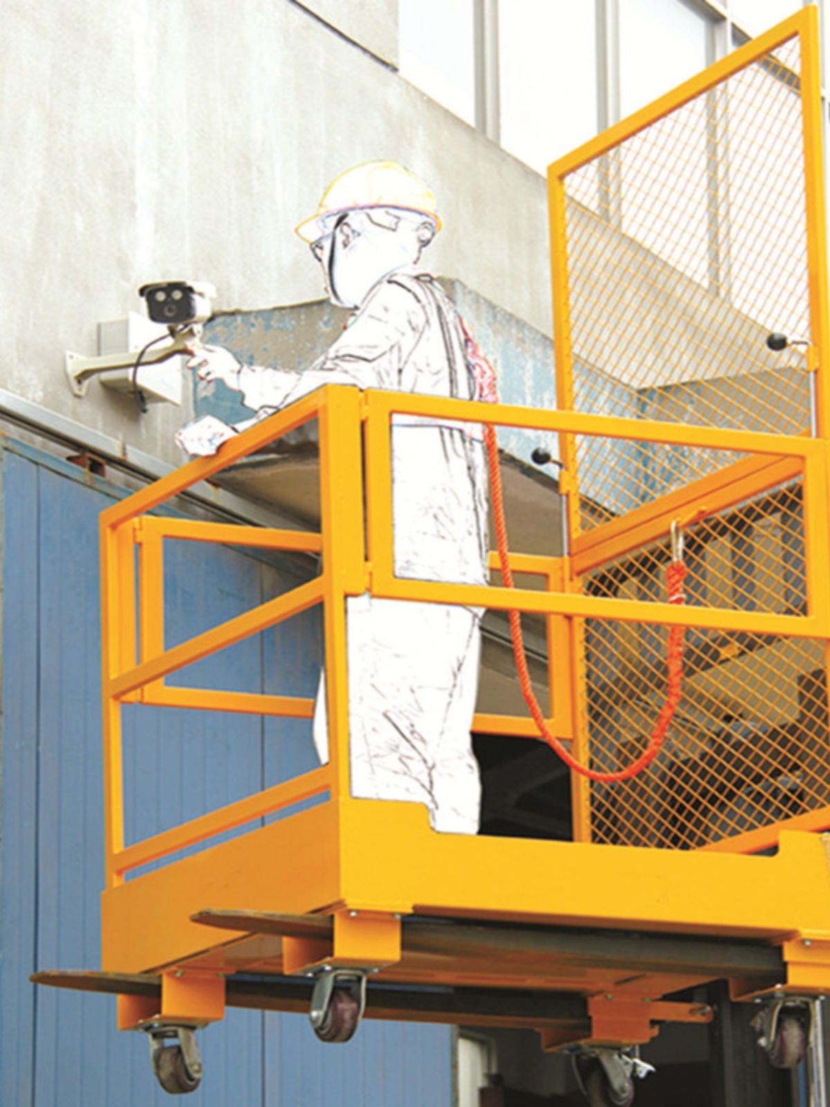 タイドンフォークリフト乗客プラットフォーム折りたたみ式高所屋外メンテナンス倉庫在庫リフトテーブルガードレールケージ付き