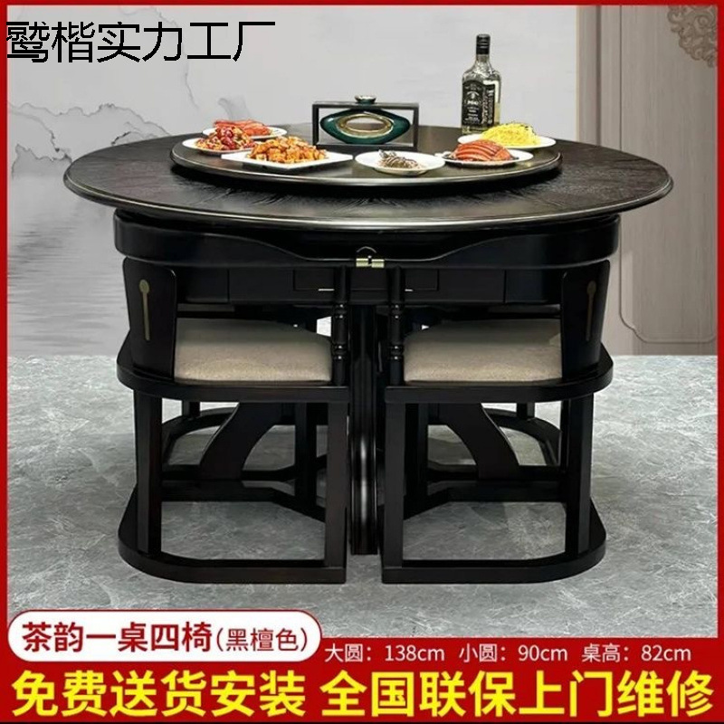 新中国式実木全自動麻雀卓食麻一体静音家庭用電動多機能食卓両用棋牌