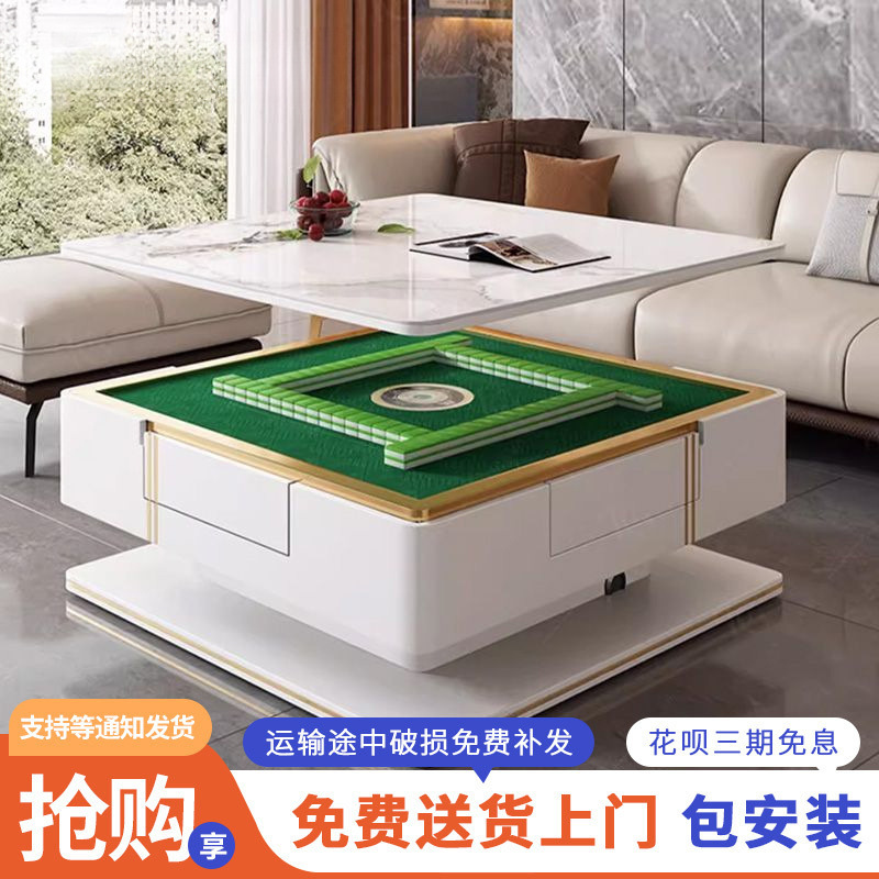 電動昇降麻雀卓全自動多機能静音麻雀卓茶卓軽豪華岩板一卓三用