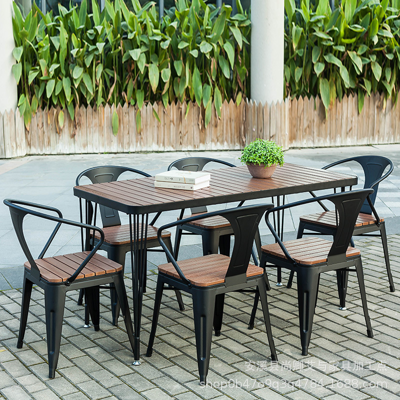 屋外プラスチック木製テーブルと椅子庭屋外レジャーテーブルガーデンミルクティー店露天バルコニーカフェテーブルと椅子の組み合わせ