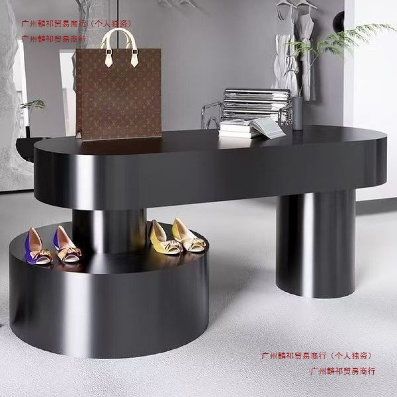 婦人服店の流水テーブル、アイランドディスプレイテーブル、テーブルの中央に置かれたシーン装飾靴とバッグのディスプレイラック