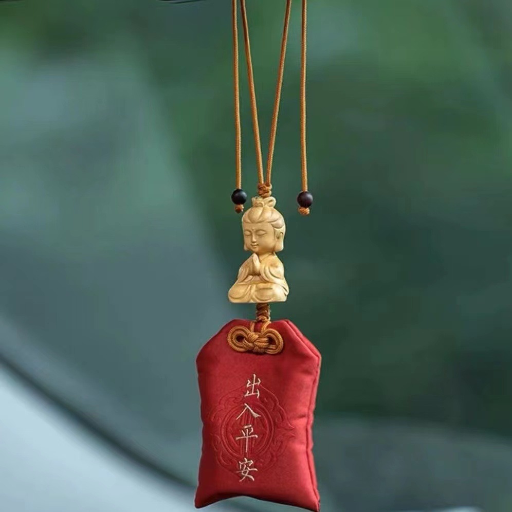 黄楊の木の仏像の観音の自動車の中は高級なアイデアの幸運の男女の手作りの福袋の平安のシンボルの袋を掛けて飾ります。
