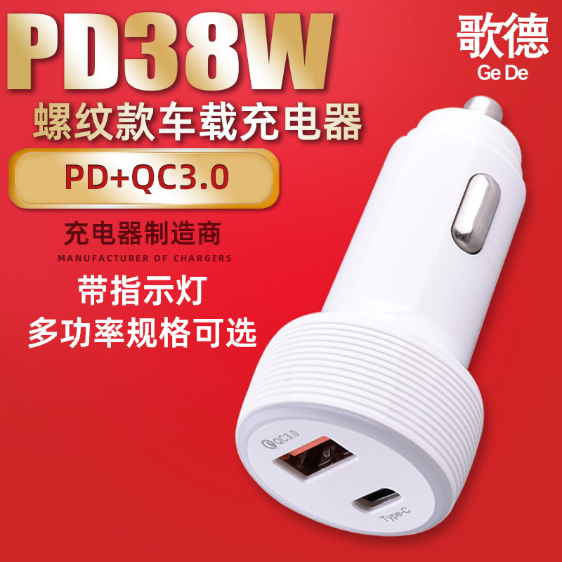 クロスボーダーpd38wねじ車載充電器自動車適用携帯電話充電器qc3.0二口usb車充電ヘッド