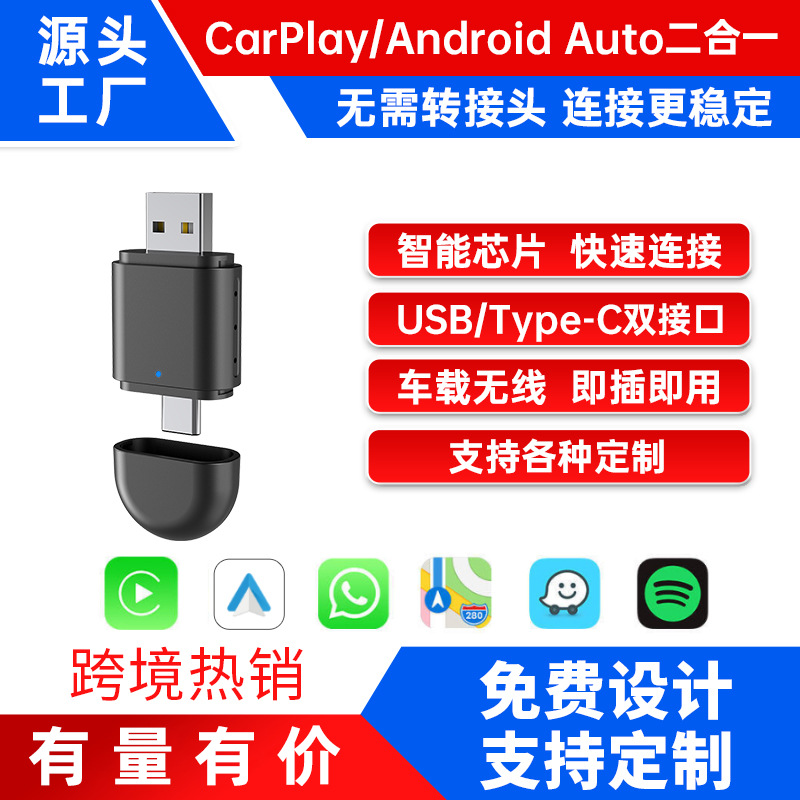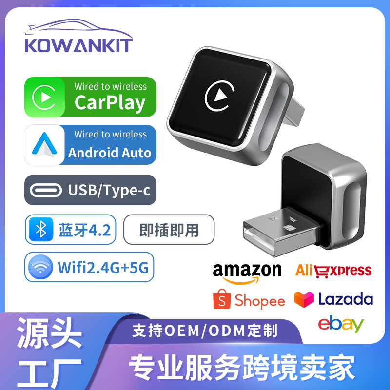クロスボーダーワイヤレスCarPlayボックス スマートカーインターコネクション ポータブルCarPlayAuto Android 2in1モジュール